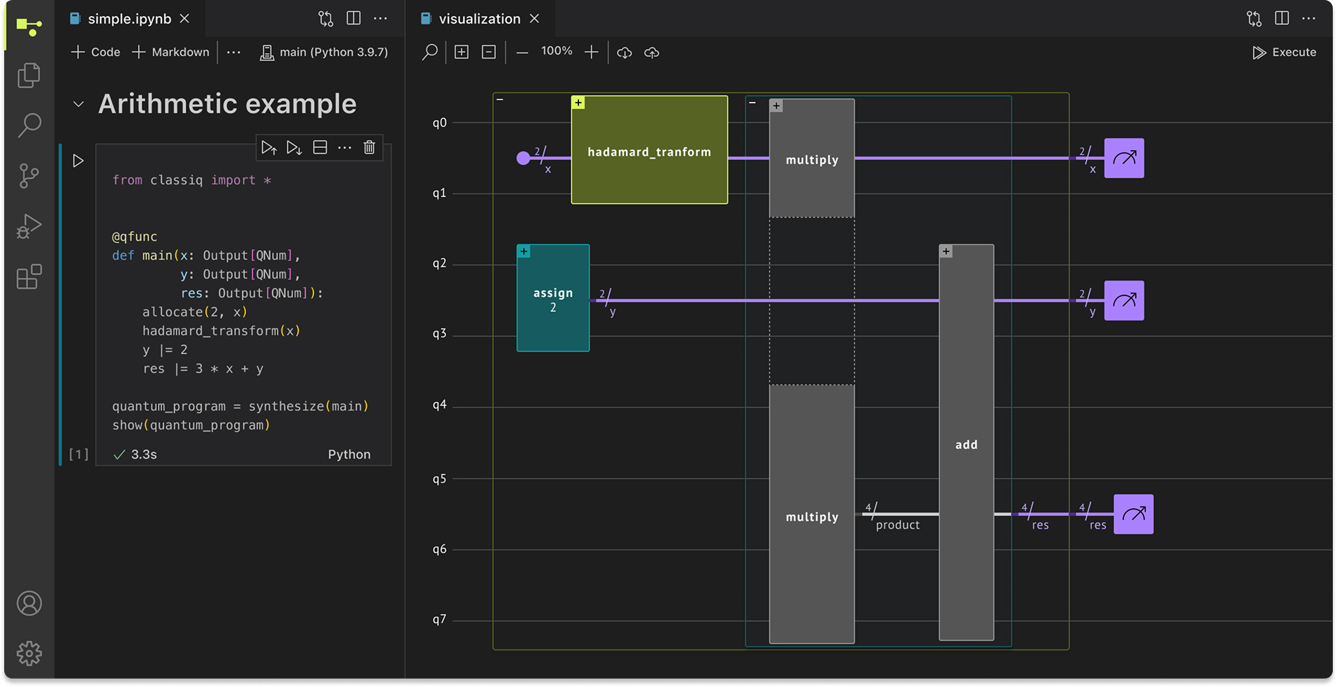 Nous pensons que les algorithmes quantiques ne devraient être limités que par l'ingéniosité et l'imagination, et non par une conception rigide au niveau des portes logiques. C'est pourquoi nous avons développé une plateforme logicielle alimentée par l'IA qui donne les moyens aux équipes à tous les stades, de l'innovation et la R&D à la production à grande échelle. Classiq est conforme aux normes SOC 2 et RGPD, et a été conçu dès le départ pour les entreprises.